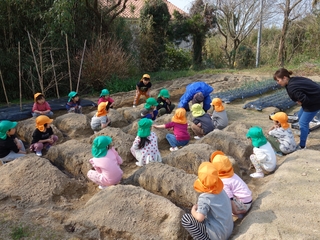 たんぽぽグループの子どもたちがじゃがいもを植え付けてくれました。