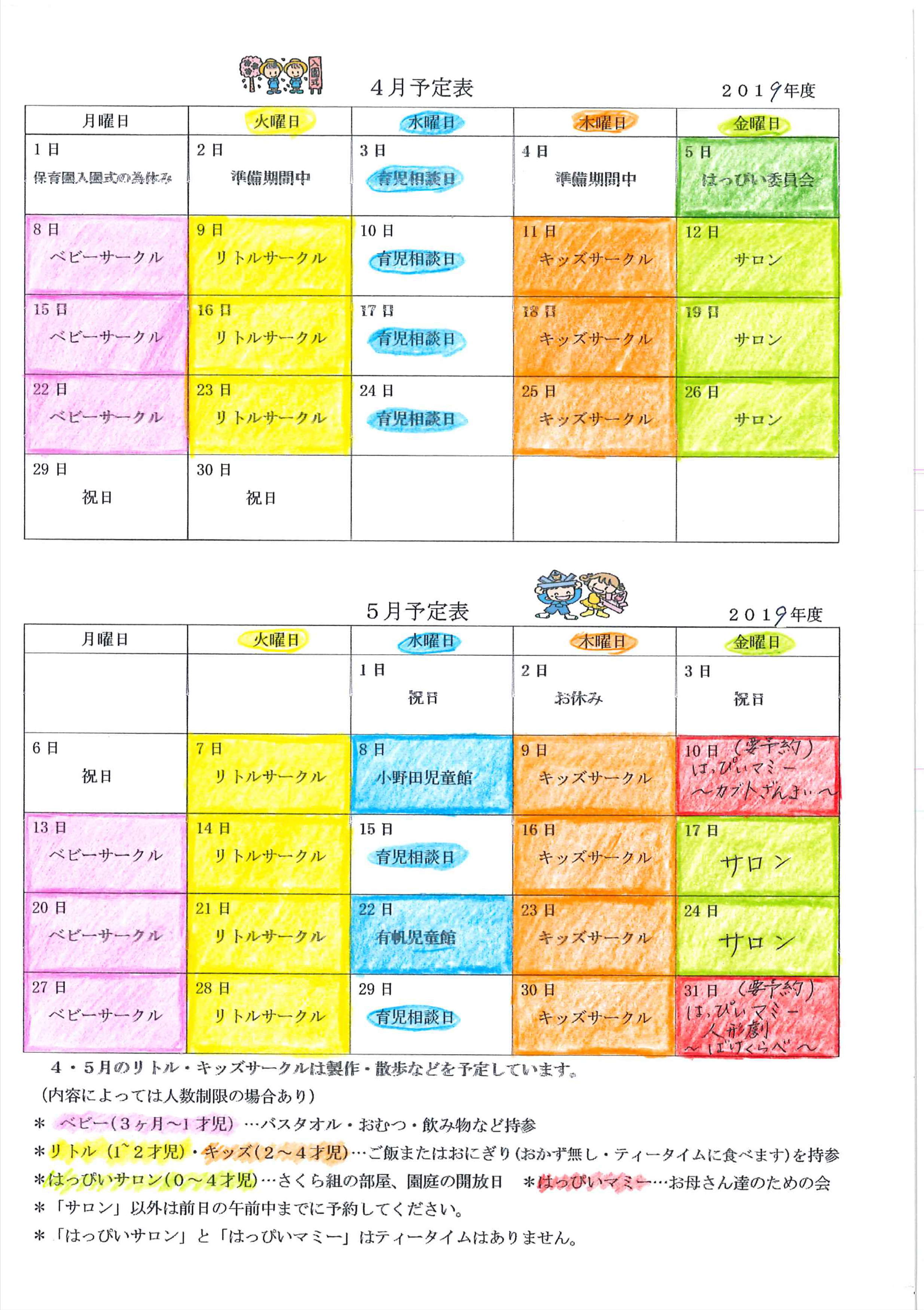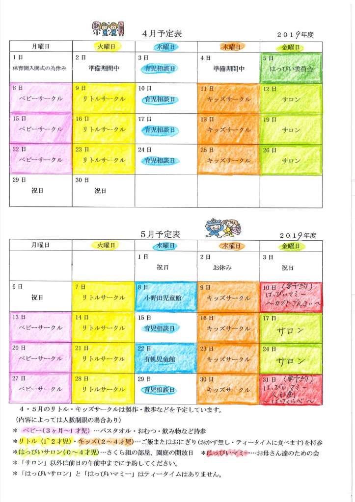 姫井保育園 地域子育て支援センター はっぴぃさくらぐみの4月5月スケジュールを公開しました。