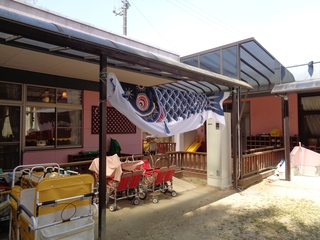 今年は大型連休もあるため、鯉のぼりを少し早く出しました。