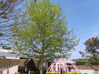 今年はケヤキの木が少し元気が無いので心配です。夏の強い日差しから子どもたちを守り、秋になるときれいに紅葉した葉っぱをたくさんプレゼントしてくれる大切な木なので、元気になってくれることを期待しています。