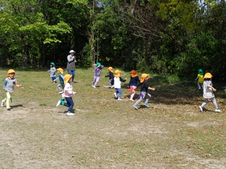「黄色いちょうちょ!」と一人の子どもが見つけて、それをみんなで追いかけて急な斜面も物ともせずに駆け上がっていきました。