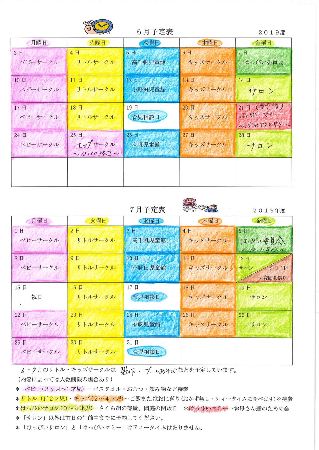 2019年6月、7月のはっぴぃさくらぐみスケジュールを公開しました。