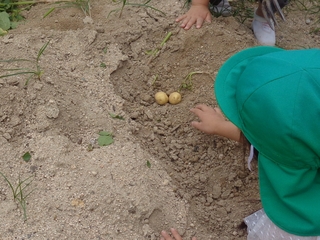「あったよ!」と大きな声で私達に教えてくれました。 まだまだ地面の下に眠っているじゃがいもがたくさんあるから、頑張って掘り返してみてね~!