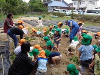 すみれグループとたんぽぽグループの子どもたちがジャガイモを収穫してくれました。
