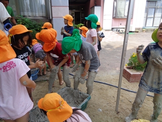 すぐさま子どもたちの治水工事が始まります。