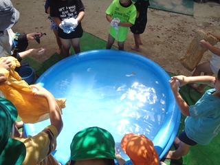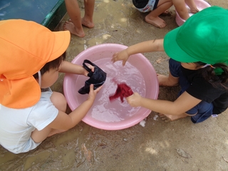 しっかり絞って乾かしたいのですが、手の返しがうまく出来ない子もいて四苦八苦です。