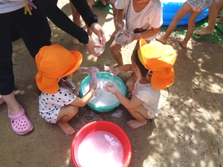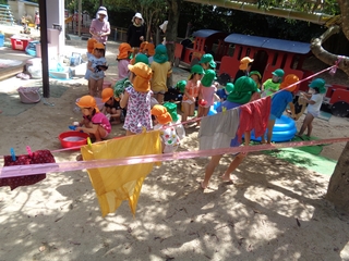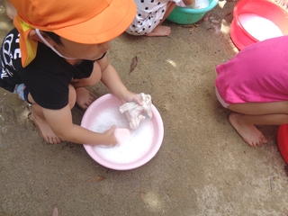 つきぐみ・ほしぐみの子どもたちがいつも遊んでいるおもちゃやお人形の洋服などを一生懸命洗濯してくれました。