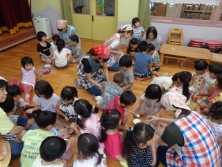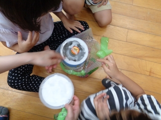 つきぐみ・ほしぐみの子どもたちが手作りアイスクリームに挑戦しました。