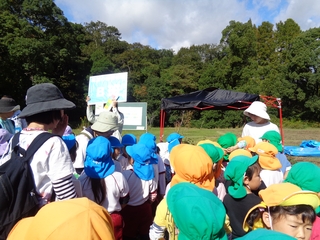 説明を聞いて、自分たちの担当エリアに子どもたちが植樹します。