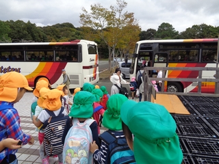 帰りも大型バスに他の保育園の子どもたちと一緒に乗って帰ります。