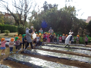 たんぽぽさんとつくしさん達が来年の5月頃に収穫する玉ねぎの苗植えをしてくれました。