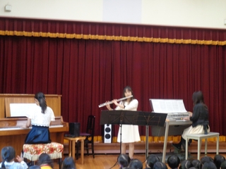 今回は、先日はっぴぃさくらぐみでリトミック教室をしてくださった田中智子先生とお知り合いの方にご協力いただいて、ピアノ、フルート、エレクトーンの演奏を披露していただきました。