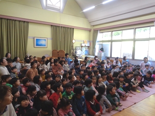 子育て支援センター「はっぴぃさくらぐみ」の親子と保育園の子どもたちが一緒に楽しむ、なかよし会(音楽会)がありました。
