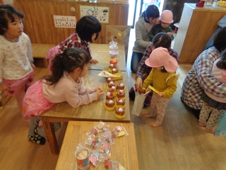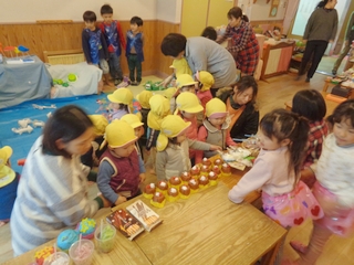 商品に思わず手が出てしまう子も。後でゆりぐみさんにもプレゼントしてあげるからと、今はちょっと我慢してもらいました。