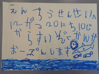 「園長先生へ 12月20日の10時から水族館がオープンします」