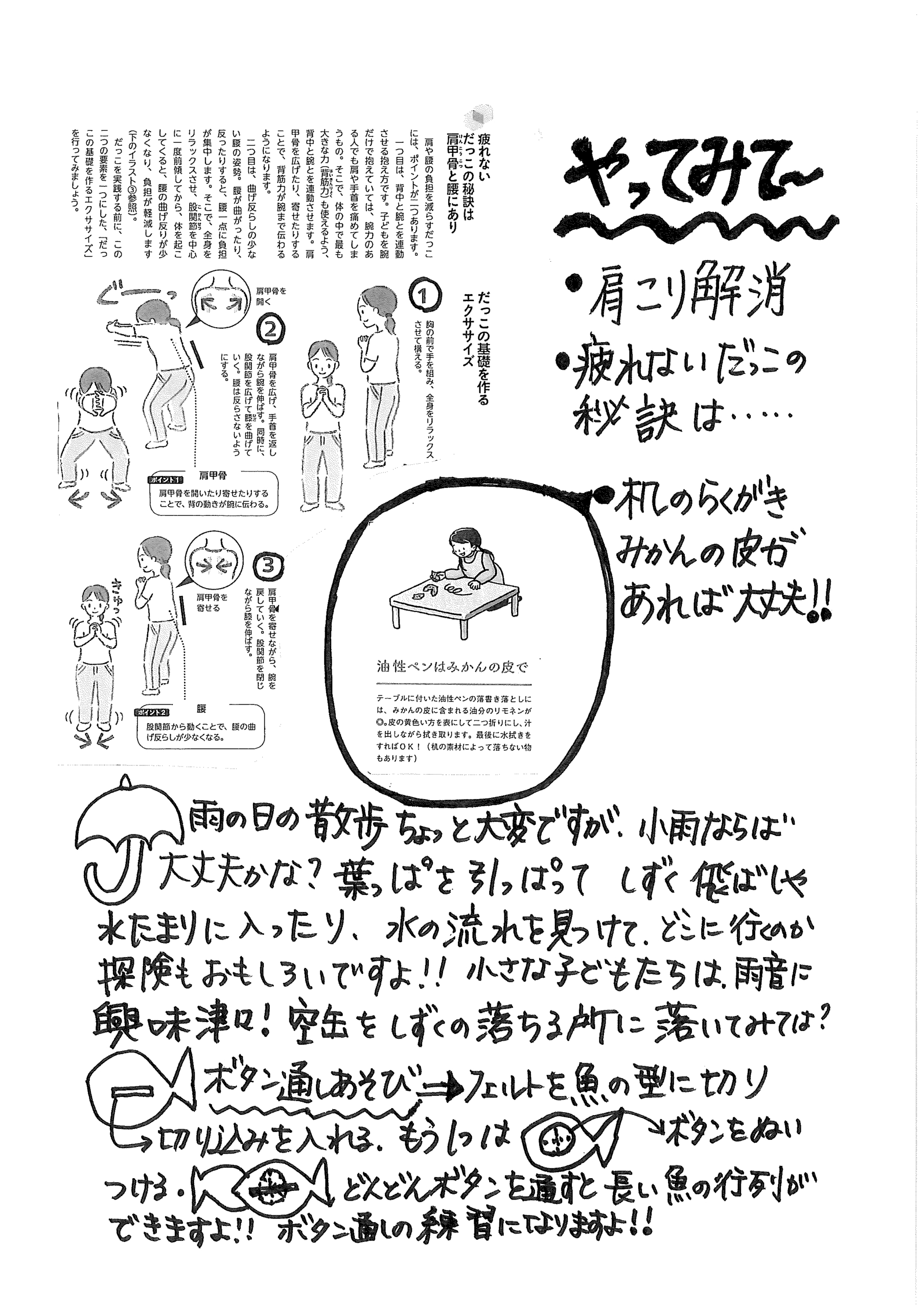 また、きげんが悪くなった子どもを長時間抱っこしていると、肩や腰に負担がかかってしまうかもしれません。今日はそんな時にちょっと知っておきたいプチ情報や家でもできる簡単おもちゃの作り方などをお伝えします。