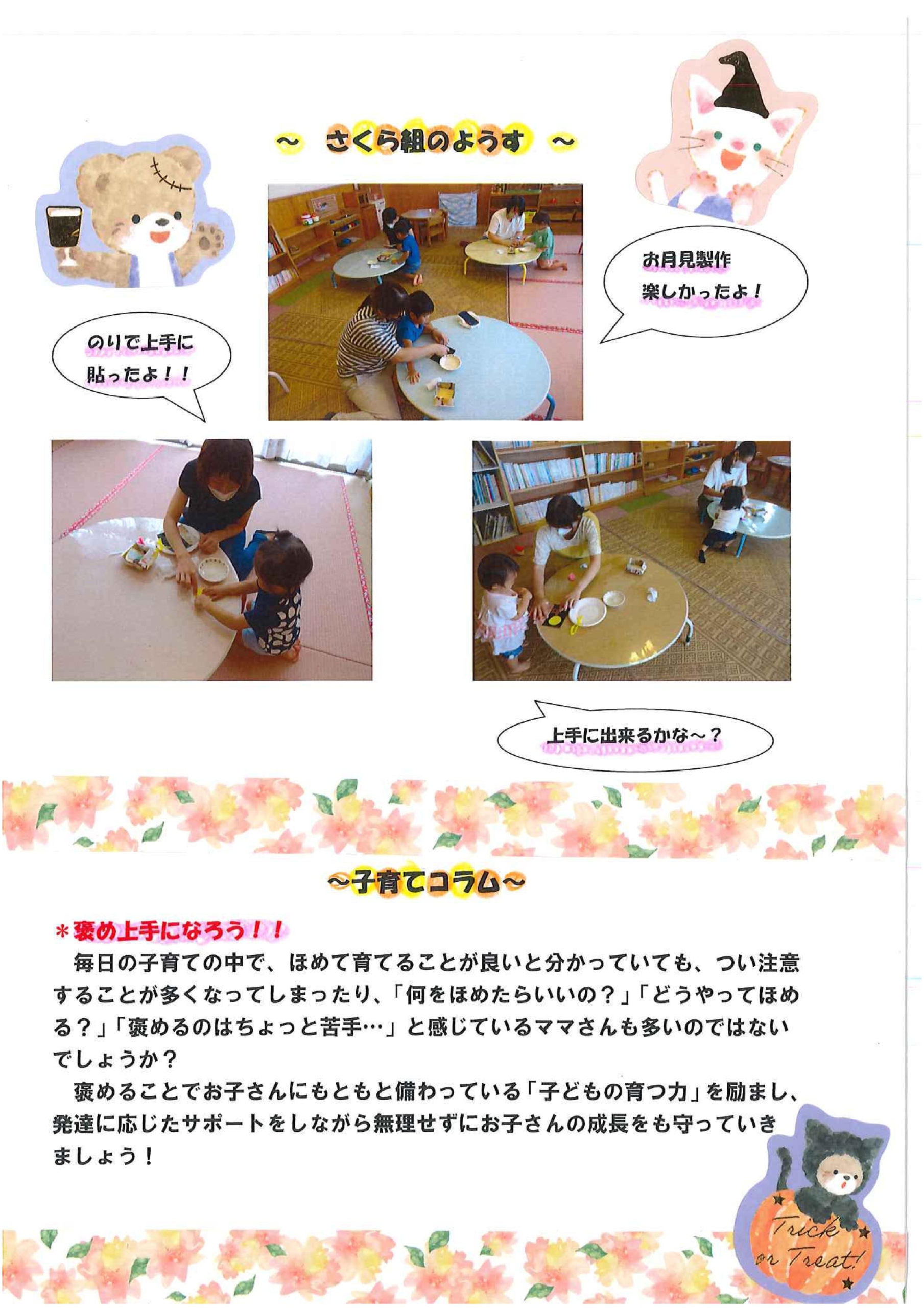 1. […] 夏も終わり、少しずつ過ごしやすい季節になってきましたね。 食欲の秋、読書の秋、スポーツの秋、みなさんはどのような秋をお過ごしでしょうか? さくら組でもいろいろな秋を一緒に見つけて、楽しい毎日を過ごしていきたいと思います。 […] Read More […]