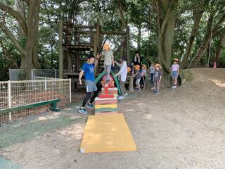 保育園にある道具をうまく組み合わせて、どきどきがいっぱいの楽しい運動遊びの時間となりました。