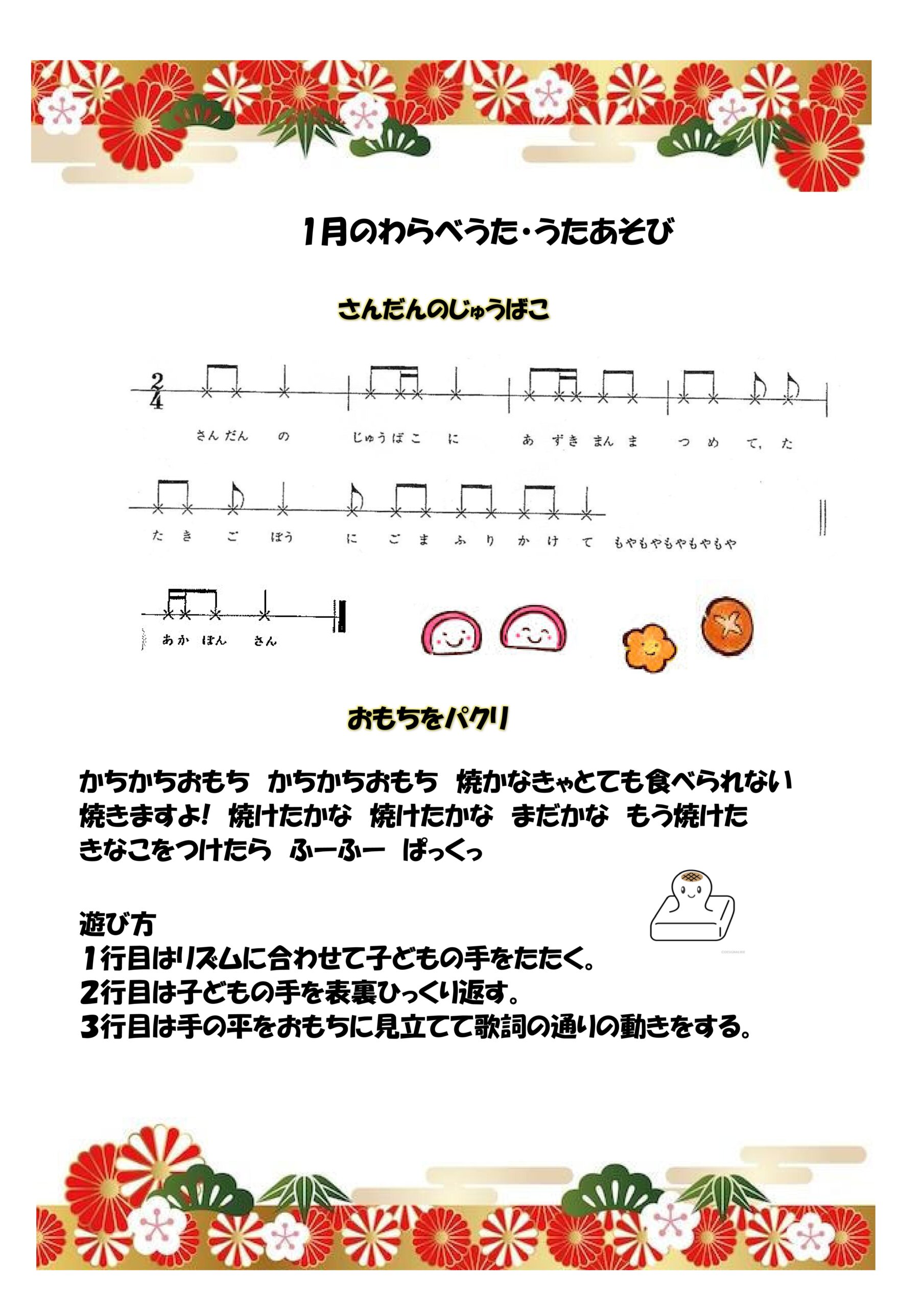 新しい1年が始まります。今年はどんな1年になるのかな?どんな1年にしようかな?私達も、みんなと一緒に楽しく笑顔いっぱいの場所を提供できるような1年にしたいと思っています!さくら組でスッキリと晴れ晴れとした心になってもらえますように・・・