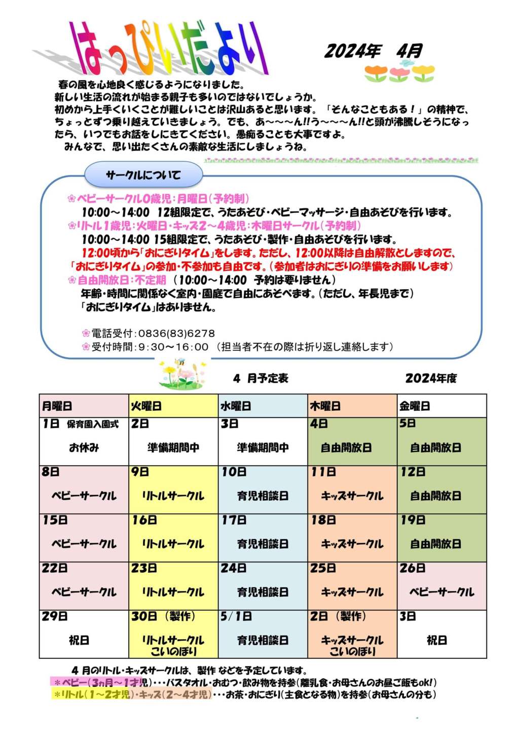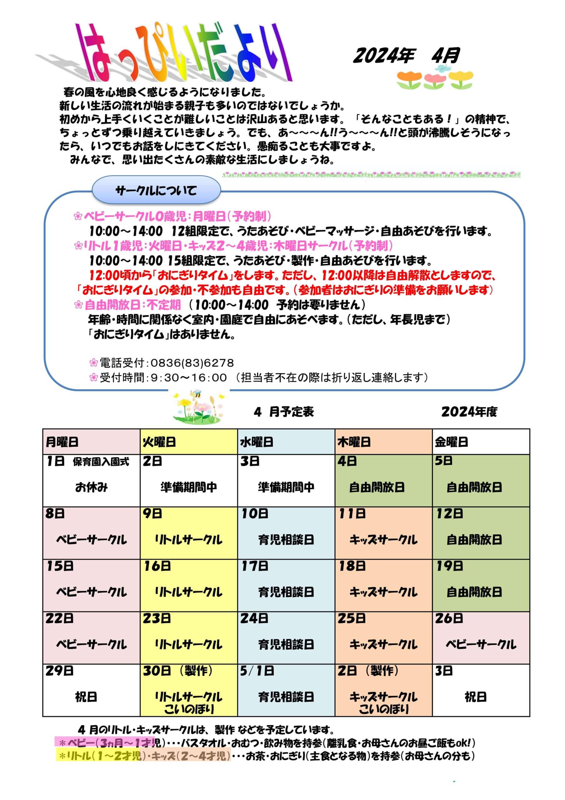 2024年4月のはっぴぃさくらぐみスケジュール