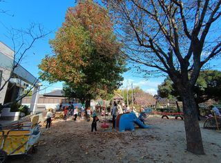 姫井保育園の園庭にある大きな2つの樹木からは秋のプレゼントをたくさんもらっています。