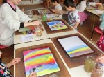 透明水彩絵具を使った「にじみ絵」は落ち着いた空間の中で子ども達が色そのものを体感して楽しむ活動です。絵の上手・下手は関係なく、色から受ける印象や子どもの内側にあるイメージを大事にして子どもの中にあるファンタジーを育てます。