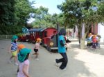 夏になると園庭のモミジバフウやケヤキが木陰を作ってくれるので、子どもたちを強い日差しから守り、元気に水遊びを楽しむ事ができます。