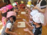 季節にあったテーマや食材を使って園児が自ら食事に関わる機会を設けています。子どもたちの目の前で園長が塩焼きそばを作って一緒に食べたり、お月見の時にはお団子を作ったり、お正月にはお餅つきをしたりと、工夫を凝らしています。