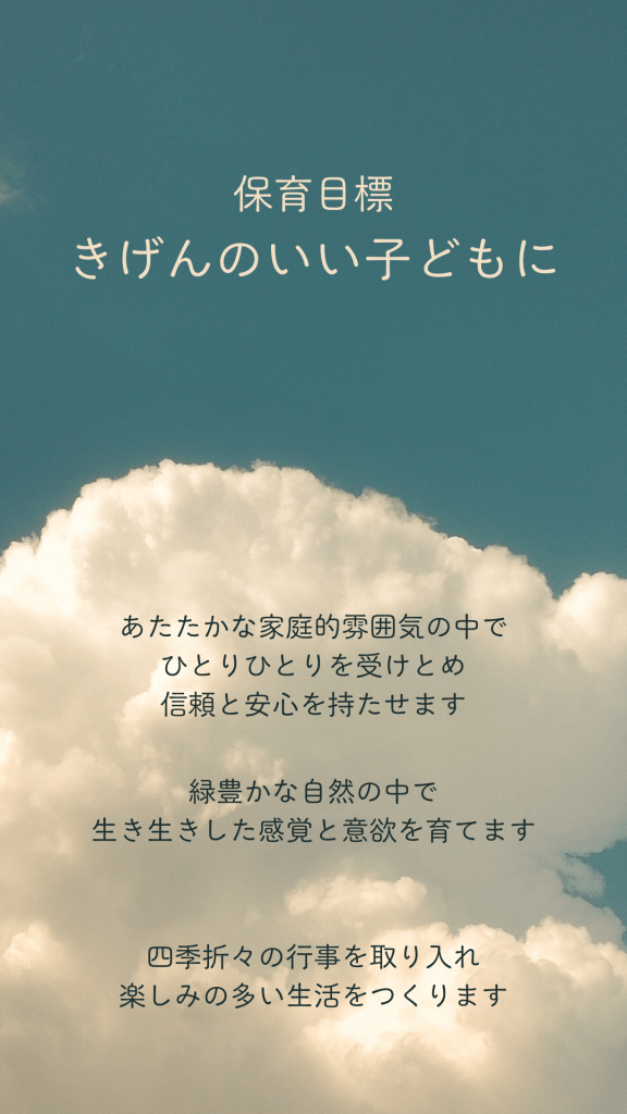 私たちは子どもが元気よく、のびのびと過ごせることを大切に、ひとりひとりの思いと個性をしっかりと受け止めて保育していこうと考えています。