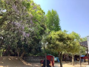 春には園庭の花壇が華やかになり、冒険の森には藤の花が揺れます。虫取り網を持って園庭を駆け回る子どもたちが賑やかな声を聞かせてくれます。