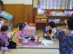 0歳から3歳までの子どもたちの部屋では畳を置くことに何十年もこだわってきています。畳は適度なクッション性があり、断熱効果・吸放湿性も高く、ホルムアルデヒドなどの有害物質を吸着する空気清浄機能があると言われています。